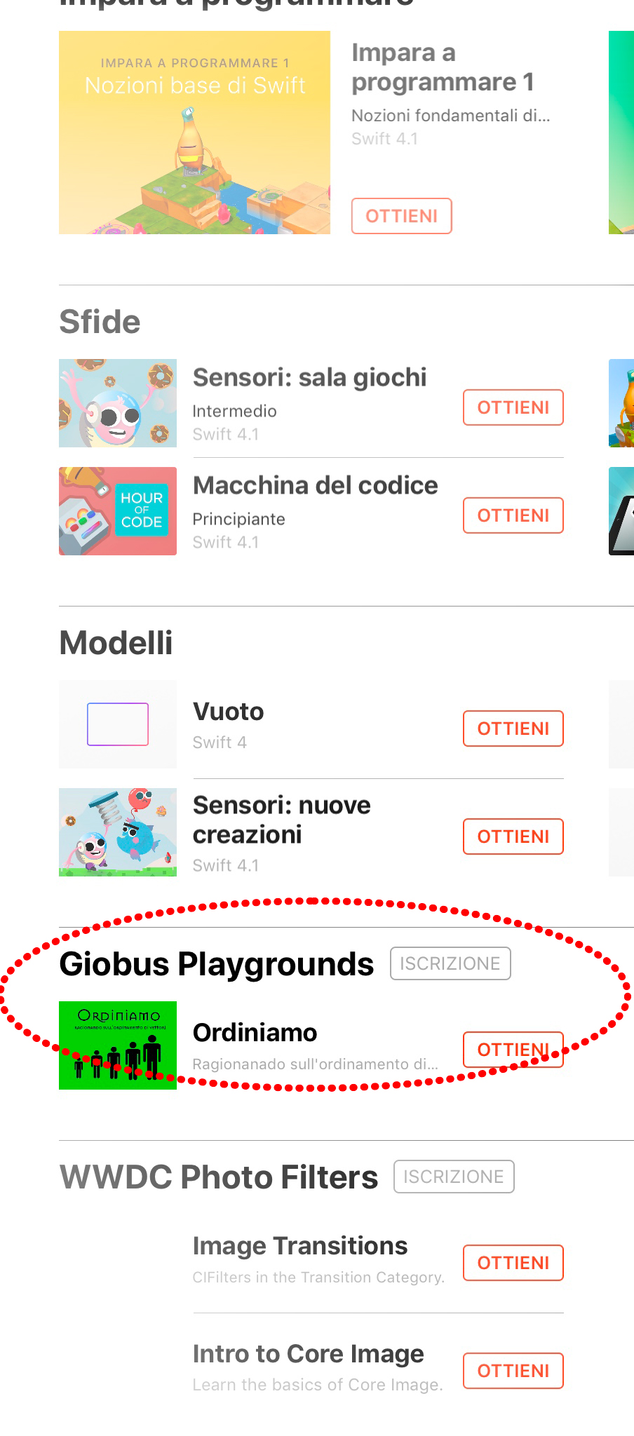 qui per accedere all'iscrizione al feed di Swift Playground che ti consente di scaricare tutte le attivita' prodotte per i corsi di coding.
